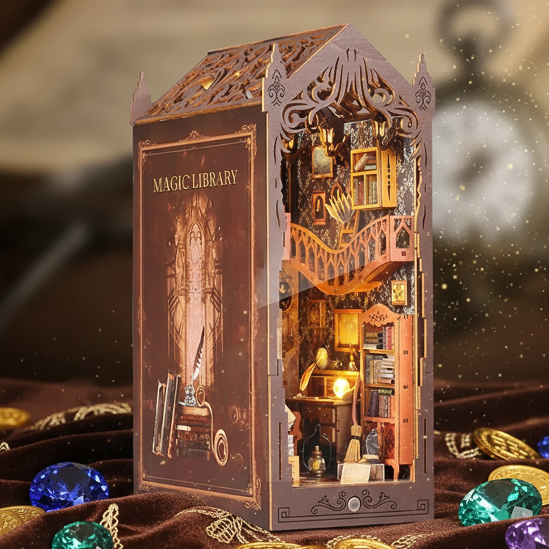 Immerse yourself in the refined charm of the Royelux Library of Books DIY Book Nook Kit — a masterpiece crafted for those who appreciate sophistication and quiet creativity. This luxurious miniature diorama captures the serenity of a private library, brought to life with a soft, intelligent glow that illuminates as you draw near.